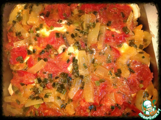Добавить помидоры и тушить еще 5 минут под крышкой. Посолить и поперчить.