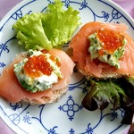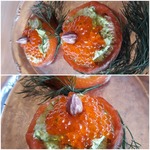 Рыбную нарезку разобрать. Кусочком рыбы фигурно украсить корзинку.