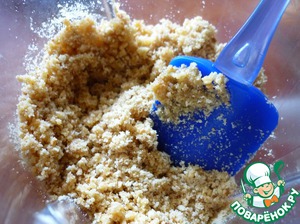 Орехи и печенье взбить блендером в крошку. Соединить с растопленным сливочным маслом.