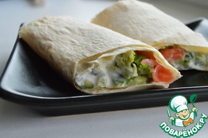 Сворачиваем как шаурму, и все - можно употреблять. С оставшимися продуктами делаем то же самое. Получится два небольших ролла.