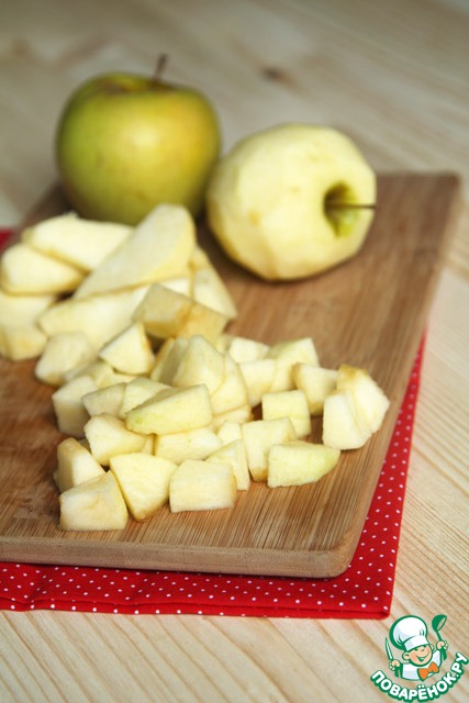 Яблоки необходимо помыть, очистить и нарезать небольшими кусочками.