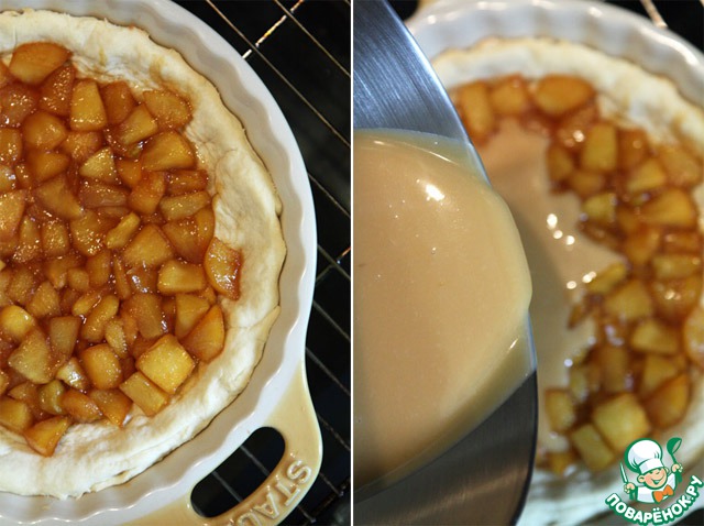 На основу выкладываем яблоки, заливаем полученной смесью...