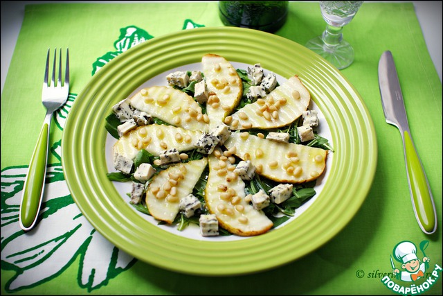 Этот салат вовсе не десерт, несмотря на то, что главная составляющая - груша. У салата приятный пикантный вкус, очень интересную нотку вносит заправка. Салат прекрасно будет сочетаться с белым сухим или полусухим вином. Рекомендую попробовать, подавать его можно как сразу после приготовления, так и дать постоять пару часов.