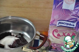Берём жимолость, насыпаем в кастрюльку, засыпаем сахаром коричневым мелким от "Мистраль".