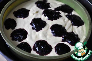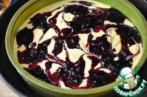 Сверху ложкой кляксами наносим сваренную с сахаром жимолость.