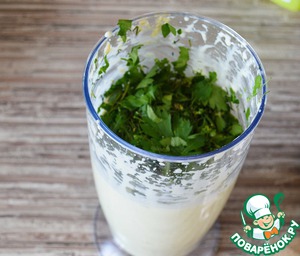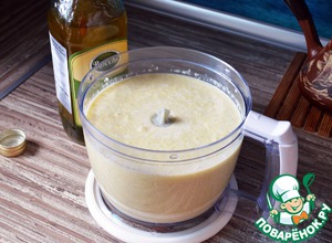 1. Яйцо, горчицу, соль, сахар, чеснок измельчить блендером и смешать.