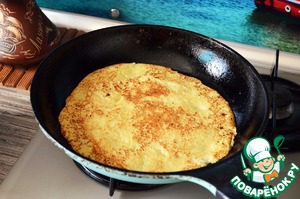 Жарить на раскаленнной сковороде, на среднем огне до золотистой корочки, с 2-х сторон.
