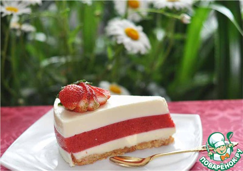 Рецепт «Чизкейк с клубничным желе "Клубника в сливках"»: