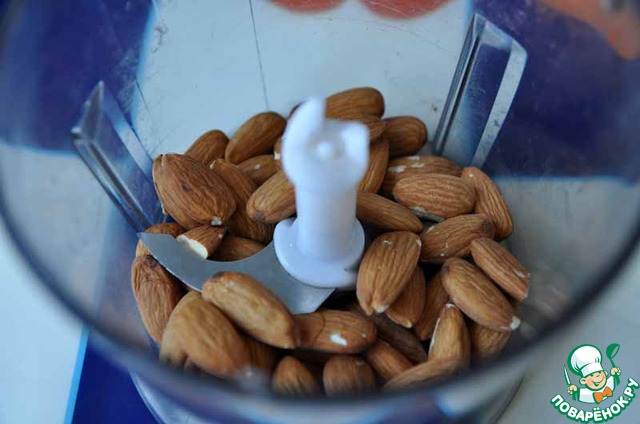 Миндаль измельчаем в блендере, нет необходимости молоть его в муку. -