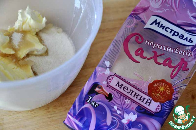 Для приготовления этого десерта берём сахар коричневый мелкий от "Мистраль", он идеально подходит для этого рецепта.