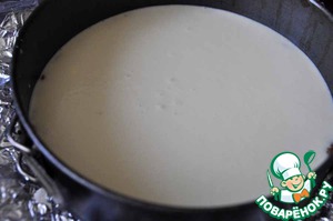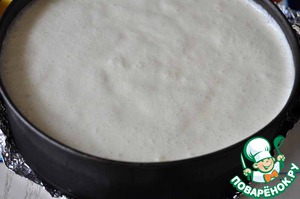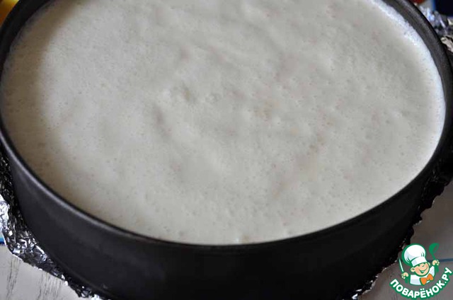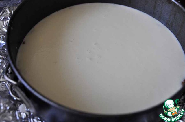 Прокладываем форму фольгою, на случай, если она не плотная, чтобы не вытекала заливка.