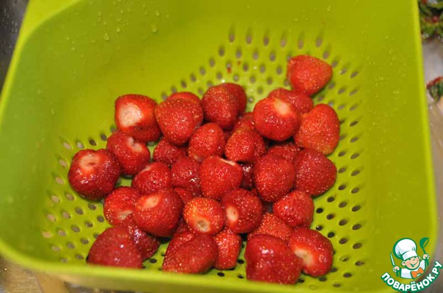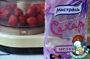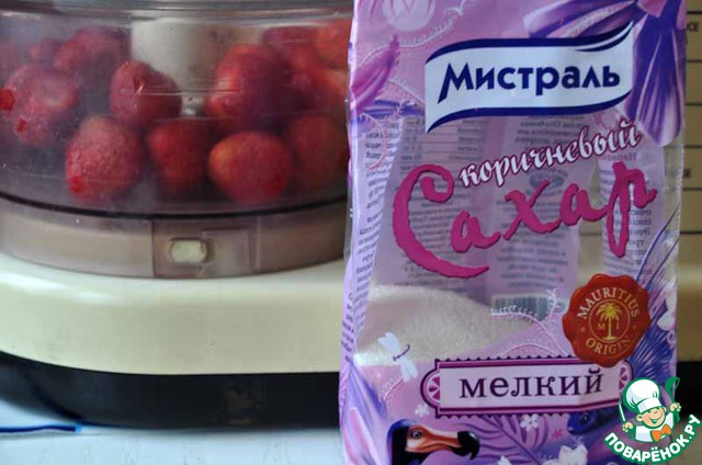 Клубнику смешиваем с сахаром коричневым мелким от "Мистраль" (100гр).