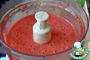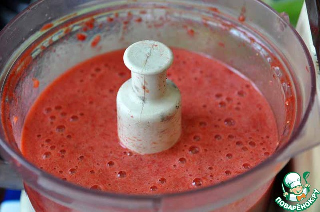 Соединяем желатин с клубничным пюре, перемешиваем. -