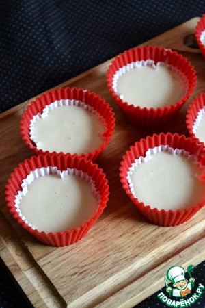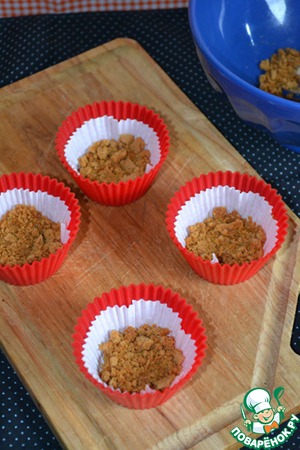 Подготовить формочки для маффинов, положить в них бумажные "юбочки". Благодаря им будет легче вынуть чизкейки.