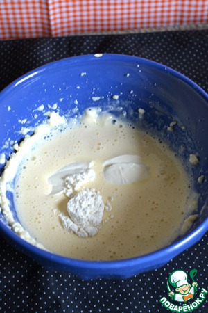 Затем ввести сметану и муку, снова быстренько взбить до однородности.