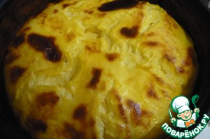 К желткам я добавила молоко, растопленное сливочное масло, посолила. И у меня получилась вот такая яичница в духовке. -