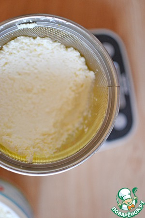 Творожный сыр я обычно отвешиваю за полчаса-час, то есть отцеживаю лишнюю жидкость. Но без фанатизма, сколько сыворотки стечёт добровольно. Затем взвешиваю и добавляю недостающее.