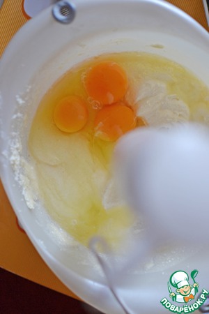 Отделить три желтка и добавить к сырной массе. Влить 1,5 ст. л. лимонного сока и взбить до однородной массы.