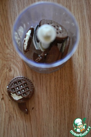 Шоколадное печенье размолоть в мелкую крошку.
