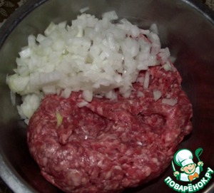 Лук мелко нарезать. Лука я беру обычно много, он дает сочность.