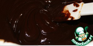 Нагреть сливки 100 мл (оставив в сторонке 3 ст. л.) до 90" (не дать закипеть!) и поместив в них кусочки шоколада размешать до однородности, добавить коньяк.