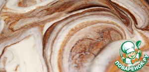 Белок 1 шт взбить с сахаром 3 ст. л. до устойчивых пиков, разделить на 2 части. В одну из которых добавить какао (просеять) и хорошо перемешать.