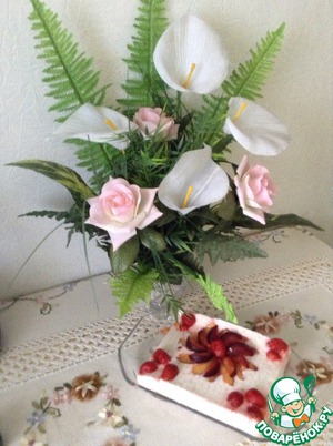Выложить все в форму, покрытую снизу ягодами или фруктами, разровнять и выставить на ночь на холод.