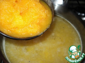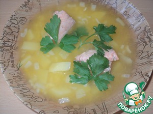 Эта уха благодаря добавлению тыквы имеет вкус свежести и прекрасный янтарный цвет.