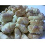 Масло 80 г и творог порубить с мукой 150 г, смешанной с солью, сахаром 15 г и ванилью 1 г, добавить сливки (сметану) и замесить тесто, скатать колобок и, поместив его между 2-х слоев пищевой пленки, расплющить в лепешку. Отправить на 15 мин в холодильник.