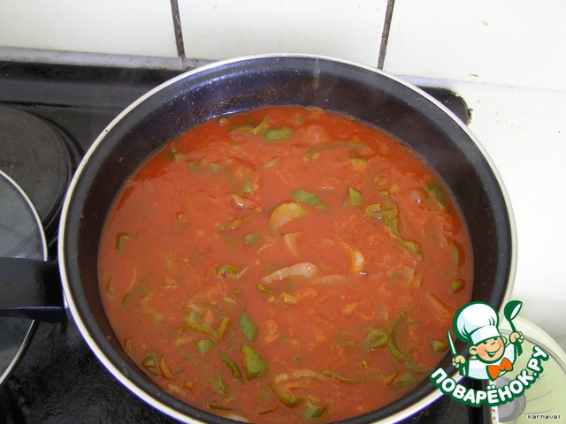 В компанию овощей добавить томатную пасту. Если овощи не дали достаточно сока (как, увы, в моем случае), добавить воды.
