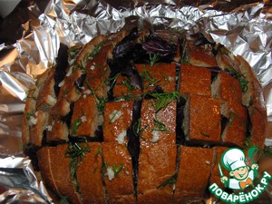 Заворачиваем наш хлебушек в фольгу со всех сторон, чтобы он равномерно запёкся!