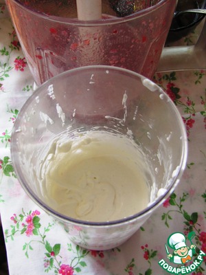 Взбиваем сливки до первых пиков, добавляем сахар и маскарпоне. Взбиваем еще раз.