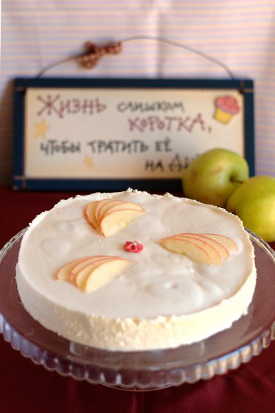 Утром аккуратно снять кольцо и украсить торт яблоками!