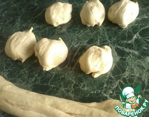 Тесто положить на стол, вытянуть в косу и отрывать от него кусочки (12 штук).