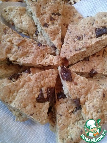 Готовила с грецкими орехами и белым сахаром. Шоколадные капли заменила обычным черным шоколадом. Отлично всё получилось!