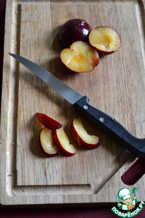 • В это время подготовить начинку. Сливы нарезать.