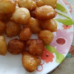 Шарики получаются полупустыми: одна половинка - это пропитанное сиропом воздушное тесто, а вторая половинка - это пустота, заполненная самим сиропом, и все это вкусовое удовольствие обрамлено в хрустящую заманчивую корочку.