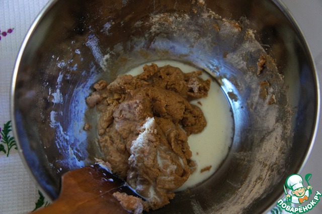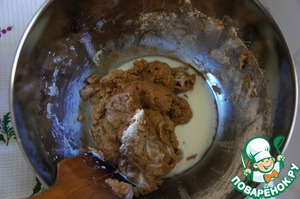 • Постепенно добавляем в тесто молоко. По рецепту идет 0,5 стакана, но у меня ушло в 2 раза меньше. Тесто будет гладкое и послушное.
