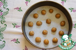 • Скатаем маленькие шарики и выложим их на расстоянии друг от друга в форму, проложенную промасленной пекарской бумагой.