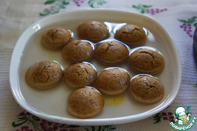• После готовности необходимо дать отдохнуть печенью 3 минутки, затем погружаем печенье в ледяной сироп на 1 минуту. Печенье должно быть покрыто сиропом полностью.