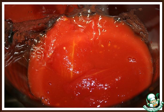 • 1. Соус: Помидоры в собственном соку измельчить блендером.