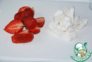 Нарезаем произвольно клубнику на кусочки.