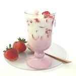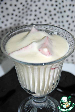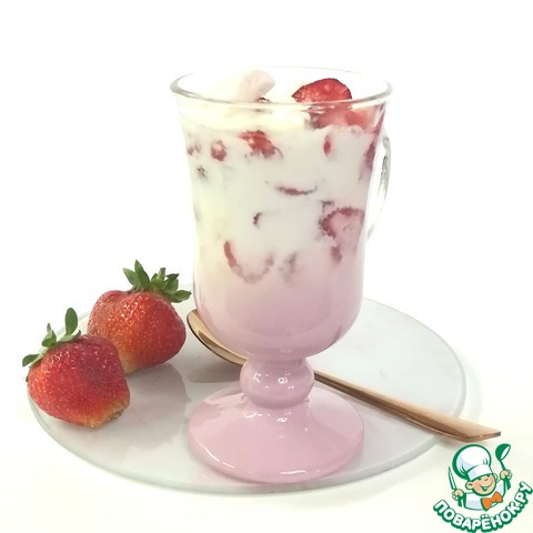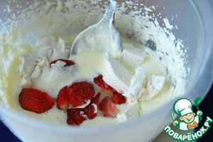 Добавляем к взбитому йогурту порезанную клубнику и зефир. Перемешиваем.