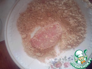 Ложкой сформировать котлеты и обвалять в оставшемся крекере.