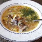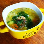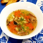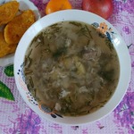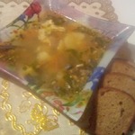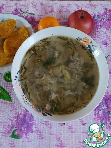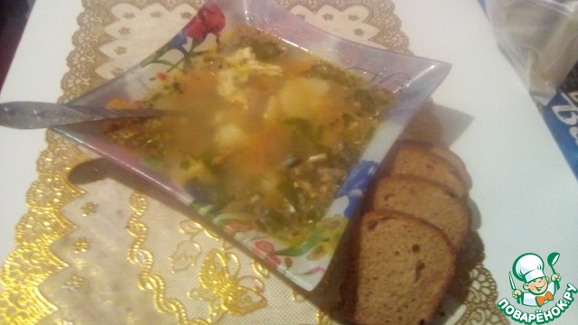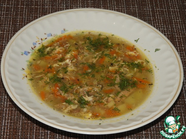 Когда суп почти готов, влить в него яйцо, при этом размешивая суп ложкой.