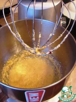 Смешиваем сахар, мягкое масло, растопленный шоколад, ванилин, муку, миндальную крошку, яйца, сливки.