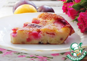 Выливаем крем в форму, выкладываем сверху кусочки слив и запекаем в разогретой духовке примерно 20-30 минут. Пока масса не уплотнится.