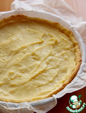 Пока крем остывает, приготовить песочное тесто по вашему любимому рецепту. Лучше, конечно же, заранее.