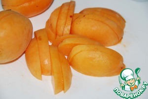 Половинки абрикосов нарезаем вдоль на полоски. -