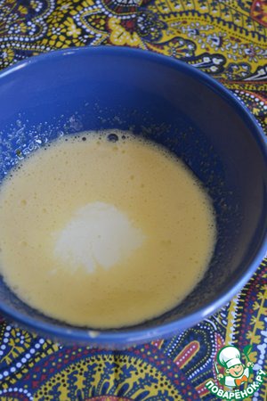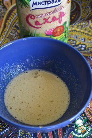 Яйцо, желток и сахар взбить венчиком до однородности, до появления легкой пены. -